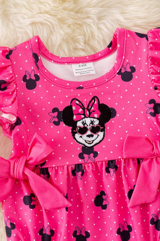 Fuschia M*nnie printed girls baby romper w/snaps.