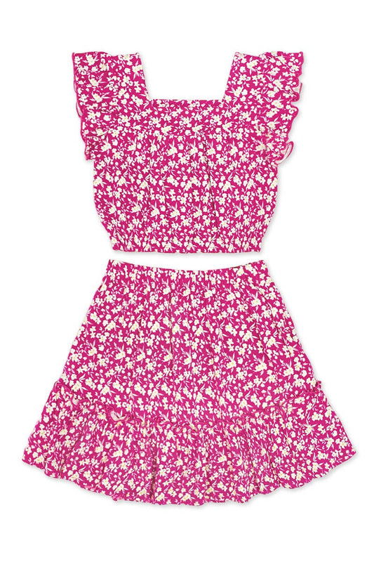 Girl's 2 pc Floral Short Set w/ Ribbed Top
