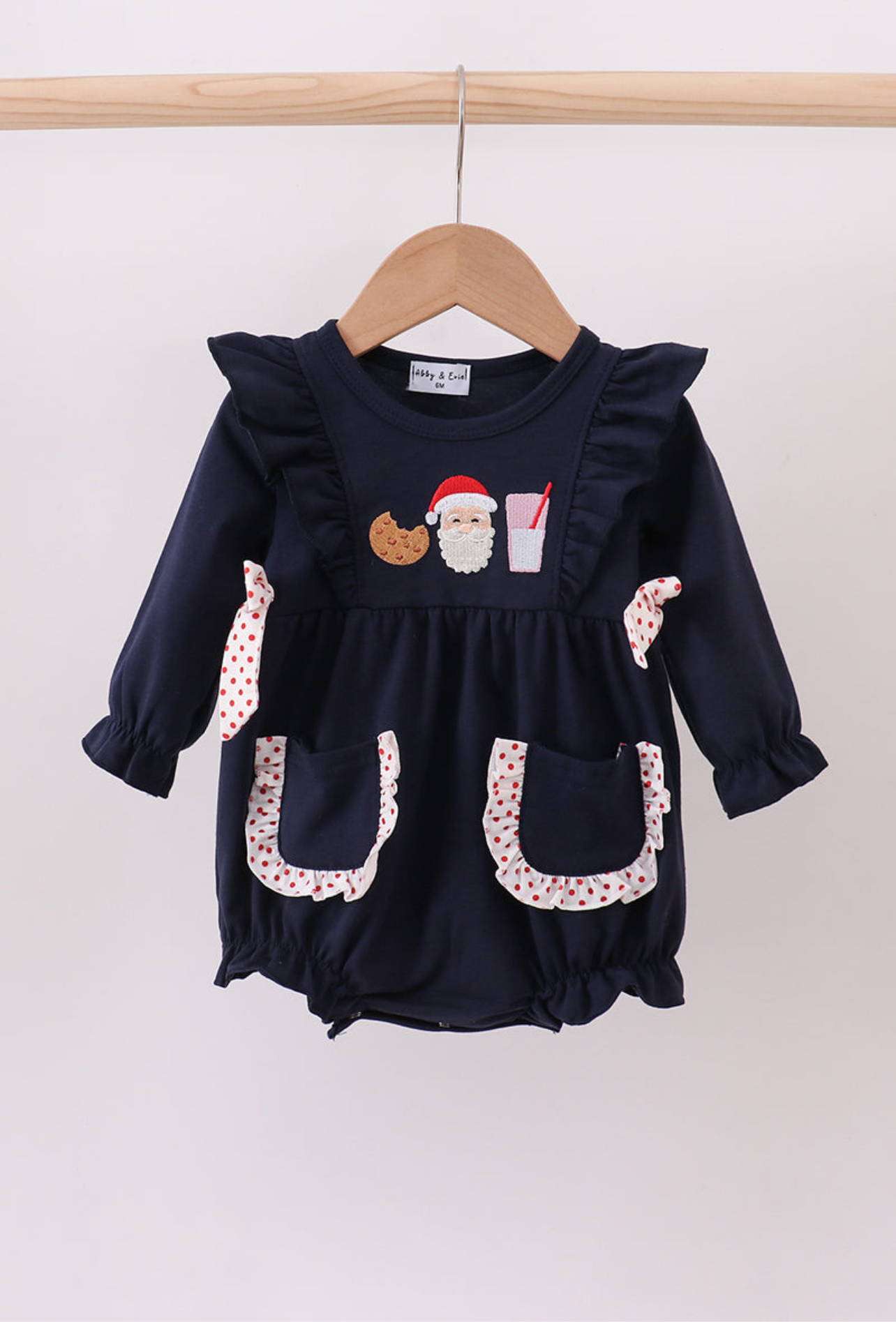 Navy Christmas Santa, Cookie and Milk embroidered bubble
